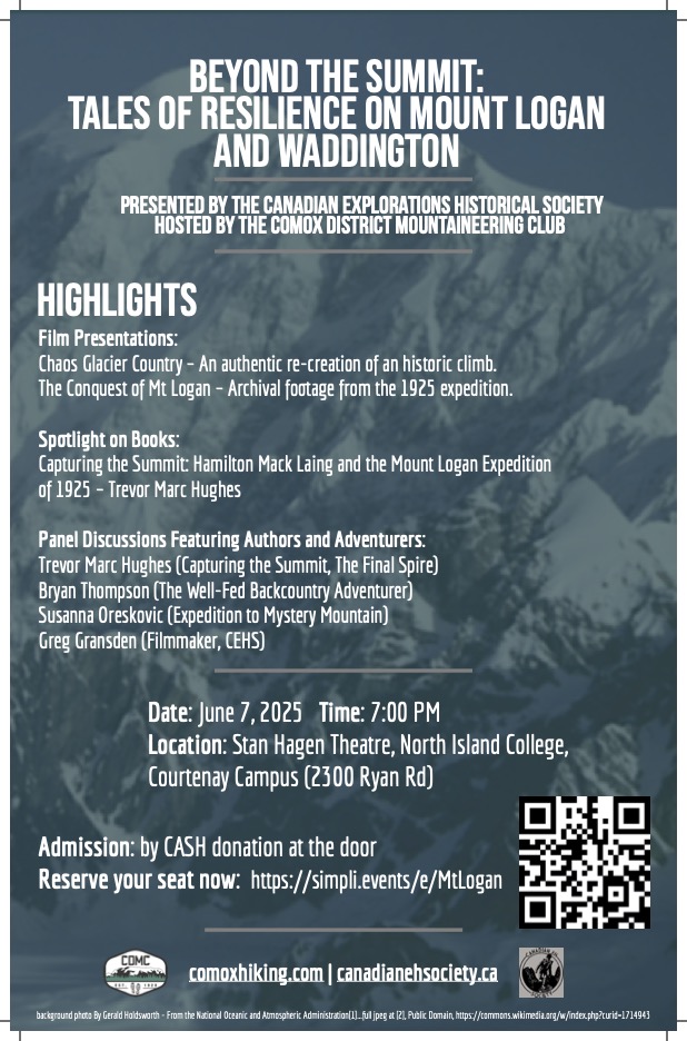 Beyond the Summit: Tales of Resilience on Mount Logan and Waddington The Comox District Mountaineering Club (CDMC) is hosting an event in collaboration with the Canadian Explorations Historical Society (Canadian […]