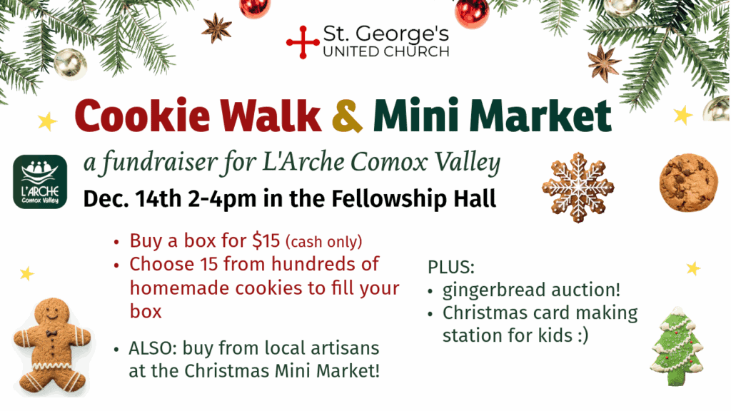 On Sunday, December 14, 2-4pm, St. George’s United Church is hosting a Christmas “Cookie Walk” to benefit L’Arche, a local non-profit in the Valley that has provided services for people […]